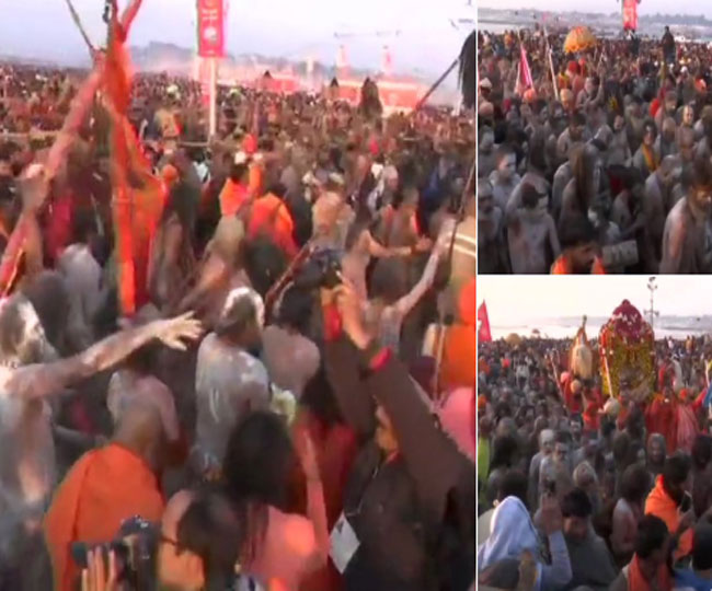 साधु-संतों के साथ आम श्रद्धालुओं भी संगम सहित अलग-अलग घाटों पर आधी रात से स्नान कर रहे हैं। कड़ी सुरक्षा के बीच घाटों पर नहाने और पूजा पाठ का सिलसिला जारी है। पारा 10 डिग्री सेल्सियस से भी कम होने के बाद भी बड़ी तादाद में लोग डुबकी लगा रहे हैं। किंवदंतियों के मुताबिक, पहला 'शाही स्नान' स्वर्ग का दरवाजा खोलता है।