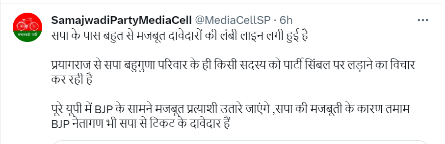 सोशल मीडिया पर हो रही इन चर्चाओं पर रविवार को समाजवादी पार्टी के मीडिया सेल ने सफाई पेश की। सपा मीडिया सेल ने कहा- "सपा के पास बहुत से मजबूत दावेदारों की लंबी लाइन लगी हुई है। प्रयागराज से सपा बहुगुणा परिवार के ही किसी सदस्य को पार्टी सिंबल पर लड़ाने का विचार कर रही है। पूरे यूपी में BJP के सामने मजबूत प्रत्याशी उतारे जाएंगे, सपा की मजबूती के कारण तमाम BJP नेतागण भी सपा से टिकट के दावेदार हैं।"