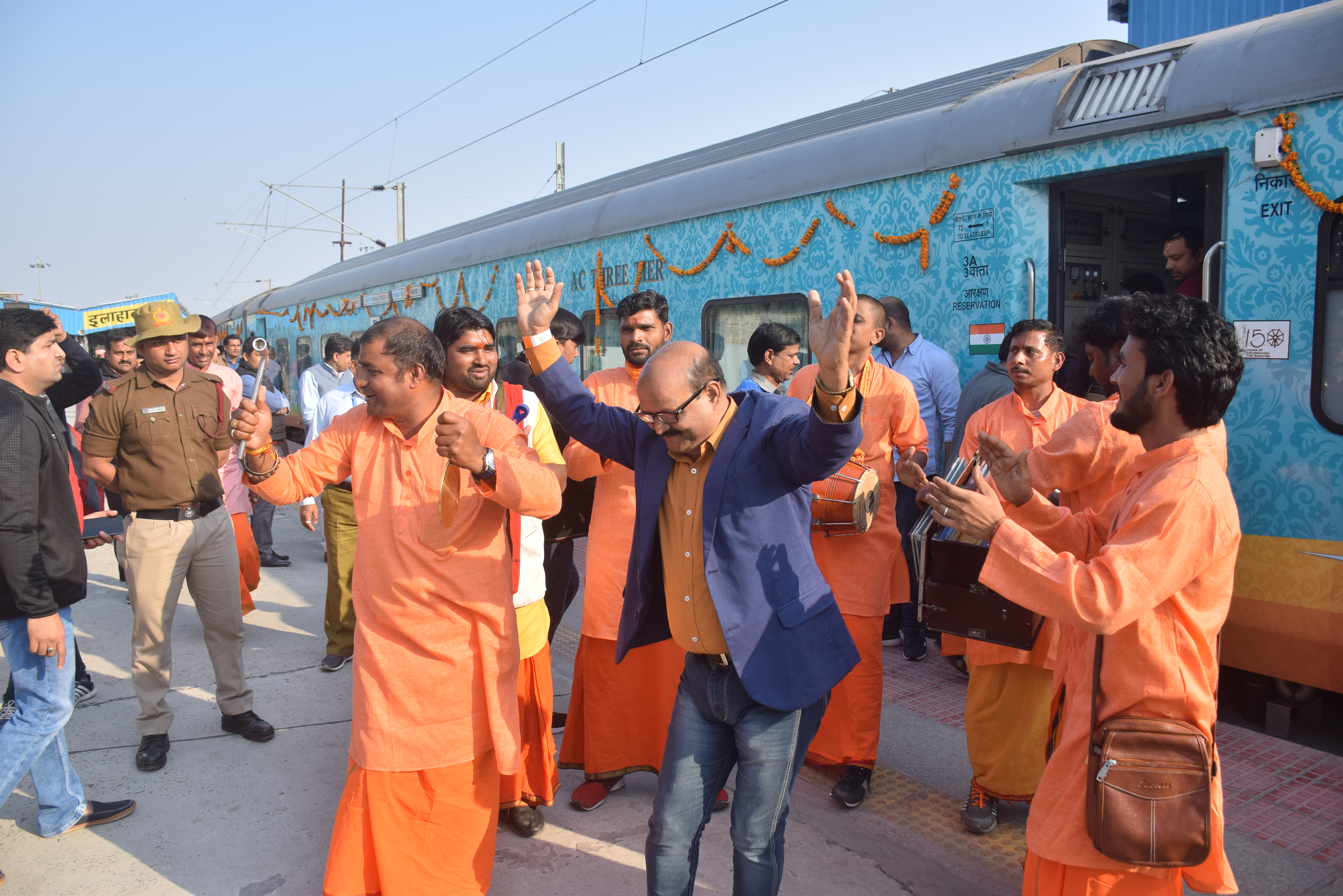 गाड़ी इलाहाबाद जंक्शन के प्लेटफार्म छह पर पहुंची तो बम-बम भोले के जयकारे से सफर कर रहे यात्रियों का स्वागत किया गया। यात्रियों ने भी जयकारे लगाए। इसमें हमसफर ट्रेन की तरह सभी कोच थर्ड एसी श्रेणी के हैं। जंक्शन पर ट्रेन दस मिनट तक रुकी। उसके बाद इलाहाबाद की सांसद डा. रीता बहुगुणा जोशी, कौशाम्बी के सांसद विनोद सोनकर, और प्रतापगढ़ के सांसद संगम लाल गुप्ता ने गाड़ी को हरी झंडी दिखाकर आगे के लिए रवाना किया।