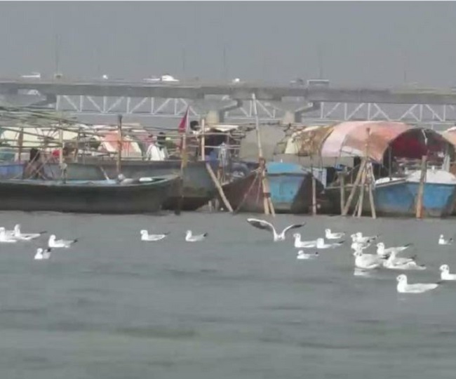 #WATCH | Uttar Pradesh: Migratory Siberian birds arrive at Triveni Sangam in Prayagraj, adding to the beauty of the ghats. pic.twitter.com/YXNoEIy4K4