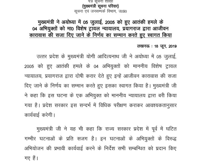 Terror Attack Verdict: राम जन्मभूमि हमले में चार को आजीवन कारावास, CM योगी ने सराहा निर्णय