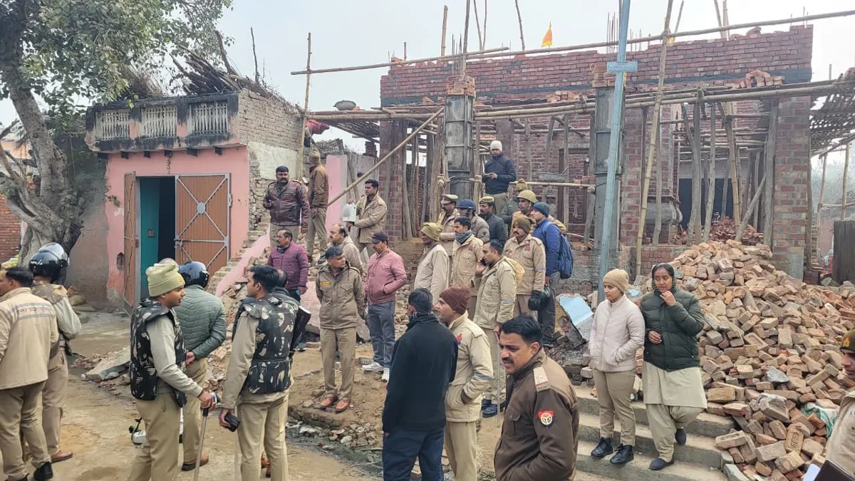 अधिकारियों ने अनुमति लेकर निर्माण कार्य शुरू करने की बात कही। जिस पर फिलहाल ग्रामीण शांत हो गए व निर्माण कार्य को रोक दिया गया है। प्रभारी निरीक्षक बालेंद्र कुमार ने बताया कि धार्मिक स्थल पर निर्माण कार्य होने की सूचना मिली थी, जिस पर पुलिस मौके पर पहुंची और निर्माण कार्य को रुकवा दिया गया है। इस दौरान कई थानों का फोर्स मौके पर तैनात रहा।