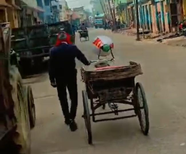 शहर में रिक्शा से रिकॉर्डिंग टेप बजाया गया।
