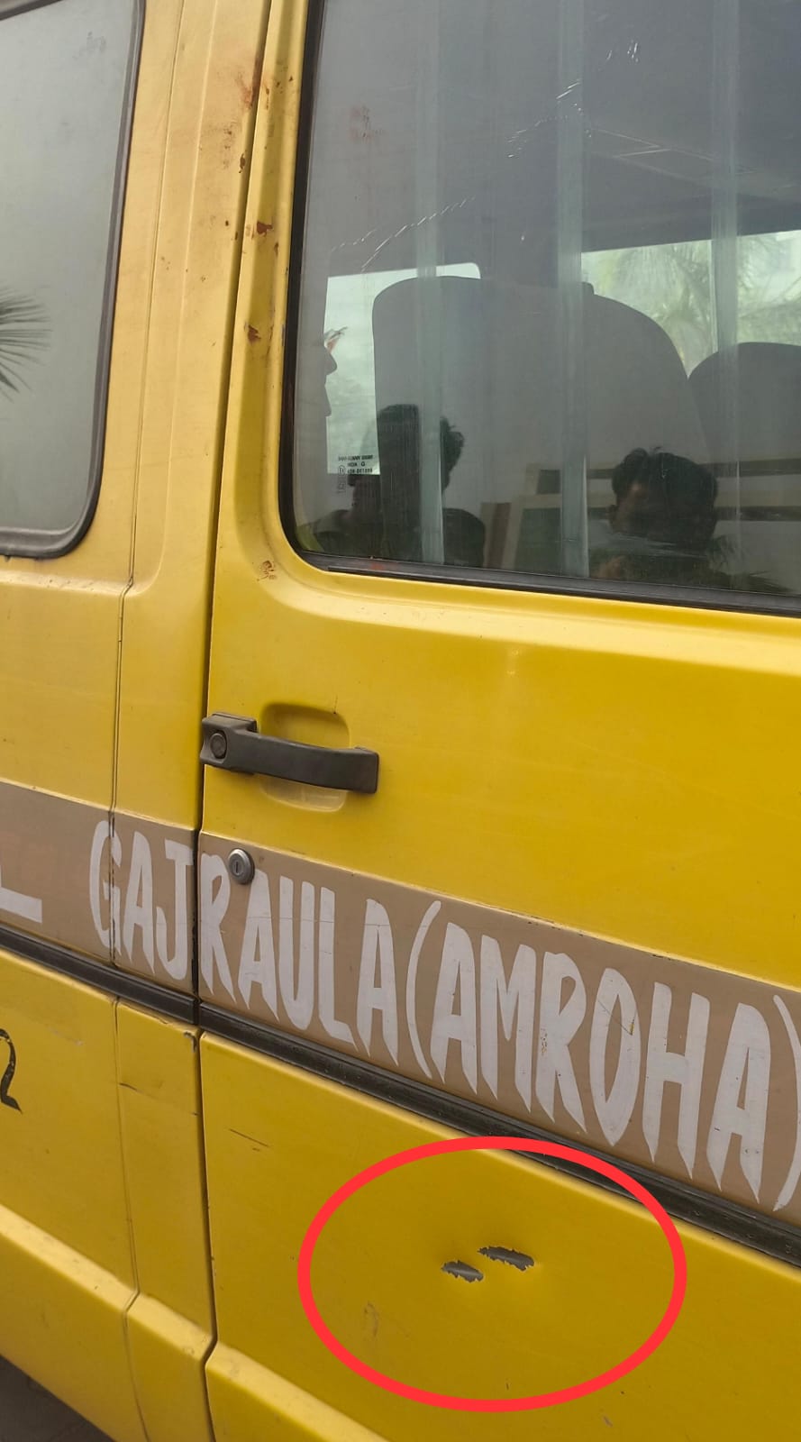 इसी बीच पास में आम के बाग से नकाबपोश दो युवक निकलकर आए और बस पर ईंट-पत्थर मारते हुए शीशा तोड़कर चालक तक पहुंचाने का प्रयास किया। जैसे ही चालक ने बस को दौड़ाने का प्रयास किया तो आरोपितों ने दो राउंड फायरिंग की। जो, चालक की खिड़की पर लगी हैं।