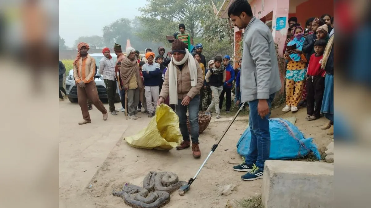 औरैया के बमुरीपुर गांव में एक साथ तीन अजगर निकलने से मचा हड़कंप, वन विभाग ने किया रेस्क्यू