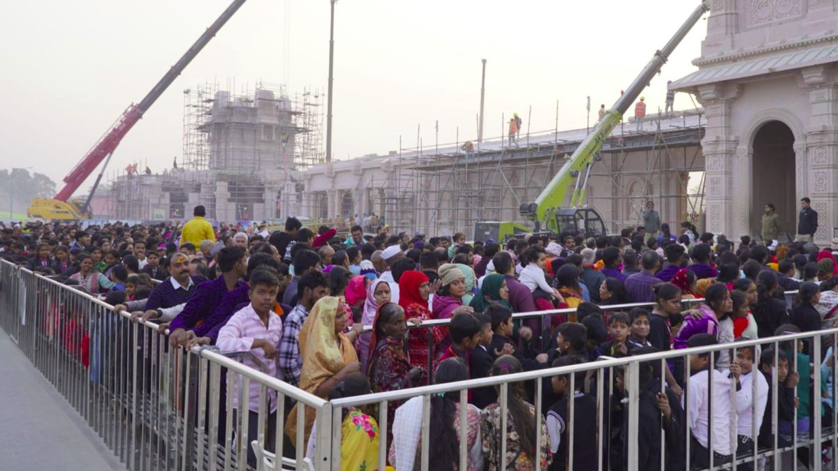 राम मंदिर में दर्शन को लगी भक्तों की भीड़।