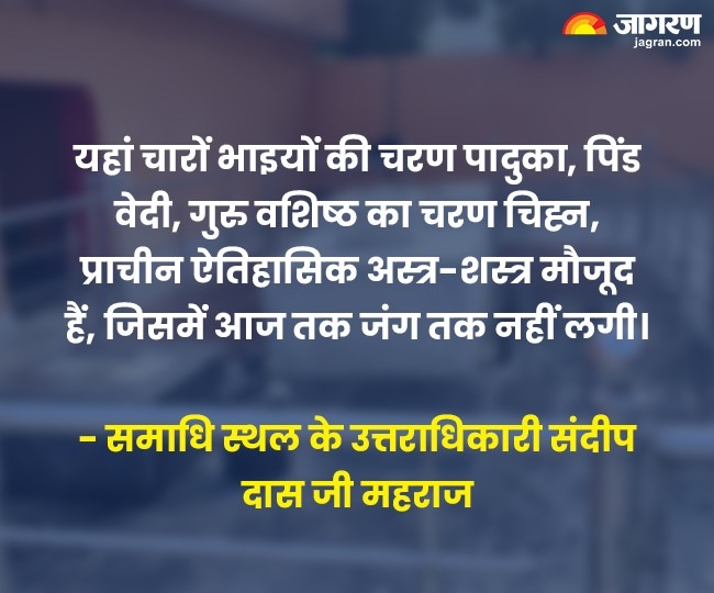 समाधि स्थल के उत्तराधिकारी संदीप दास जी महराज के मुताबिक, यहां चारों भाइयों की चरण पादुका, पिंड वेदी, गुरु वशिष्ठ का चरण चिह्न, प्राचीन ऐतिहासिक अस्त्र-शस्त्र मौजूद हैं, जिसमें आज तक जंग तक नहीं लगी। यहां दशरथ जी, भरत व शत्रुघ्न और गुरु वशिष्ठ की प्रतिमा विद्यमान है। उन्होंने बताया,