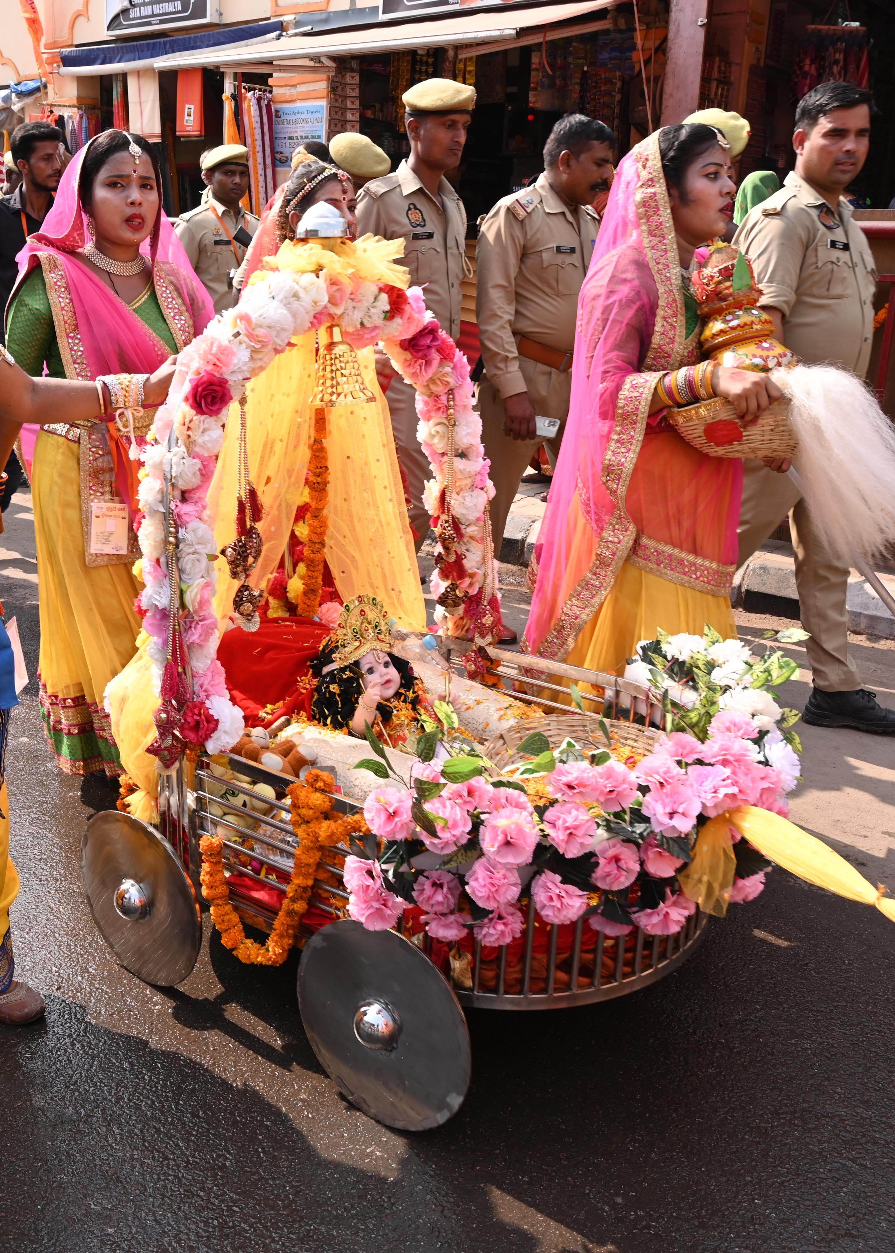 झांकियों के दृश्य को हर कोई अपने मोबाइल में कैद करता दिखा। इस दौरान रामपथ पर रंग गुलाल उड़ने के साथ जमकर आतिशबाजी भी हुई।