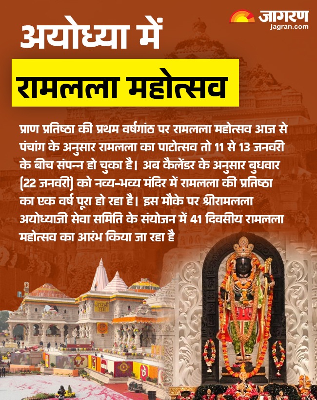 दरअसल, पंचांग के अनुसार रामलला का पाटोत्सव तो 11 से 13 जनवरी के बीच संपन्न हो चुका है। अब कैलेंडर के अनुसार 22 जनवरी को भव्य मंदिर में रामलला की प्रतिष्ठा का एक साल पूरा हो गया है।