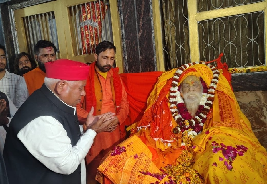 अयोध्या के सत्यधाम में रामलला के मुख्य अर्चक आचार्य सत्येंद्रदास को पुष्पांजलि अर्पित कर अंतिम प्रणाम करते सांसद अवधेश प्रसाद: जागरण