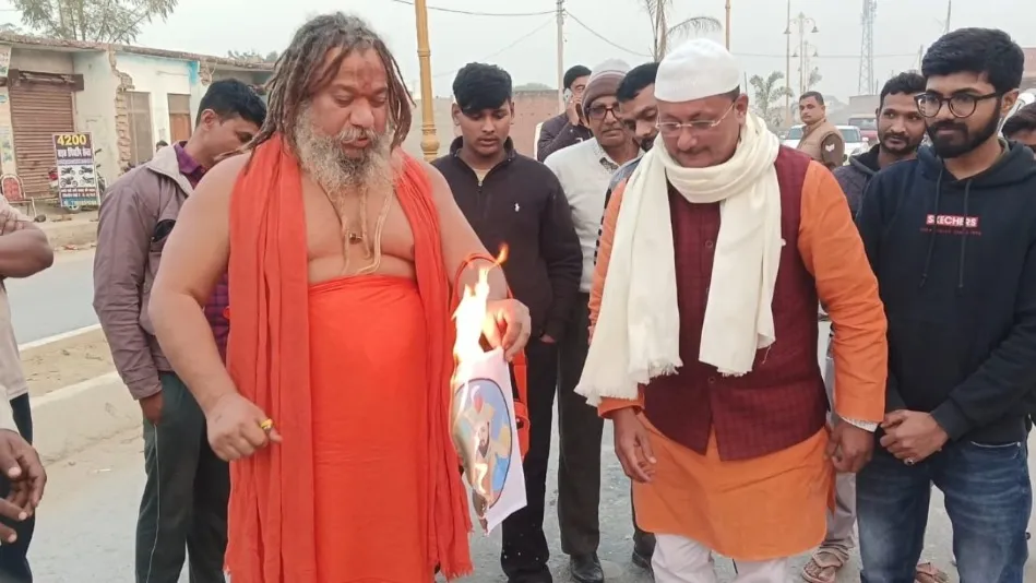 ‘बाबरी मस्जिद का राग देश की संप्रभुता पर आघात’, जगद्गुरु परमहंस और बब्लू खान ने मिलकर फूंकी बाबर की तस्वीर