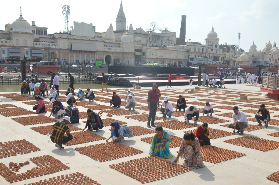 दीपोत्सव के लिए अयोध्या राम की पैड़ी पर दीप सज्जित करते स्वयंसेवक : जीतू निषाद