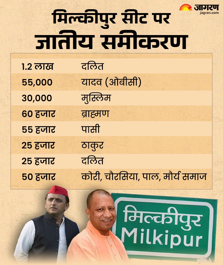 मिल्कीपुर के जातीय समीकरणों पर निगाह डालें तो यहां दलित वोट अहम भूमिका निभाते हैं। इस सीट पर 3.5 लाख पात्र मतदाताओं में से 1.2 लाख दलित, करीब 55,000 यादव (ओबीसी) और 30,000 मुस्लिम वोटर्स हैं।