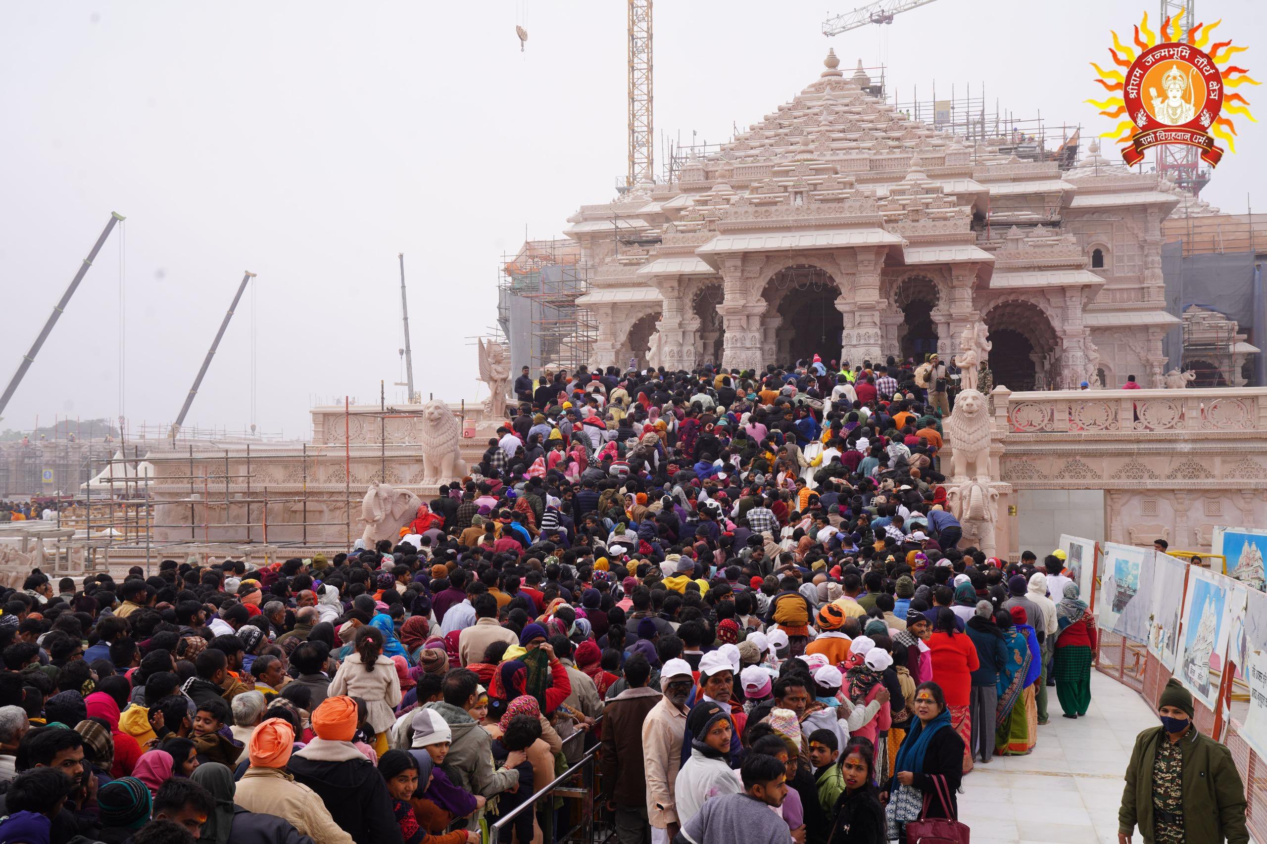 अनवरत उमड़ रही आस्था को आचार्य मिथिलेश नंदिनी शरण के शब्दों में कहें तो पूरा देश रामलला के इस मंडप के नीचे एकाकार होना चाहता है। भूगोल इस मंडप में कालीन बिछाता है, इतिहास बंदनवार बांधता है। शास्त्र पहरेदारी करते हैं। देवत्व यहां बिखरे फूल समेट कर अपना मुकुट सजाता है और... क्या ! अभी बस इतना ही ..