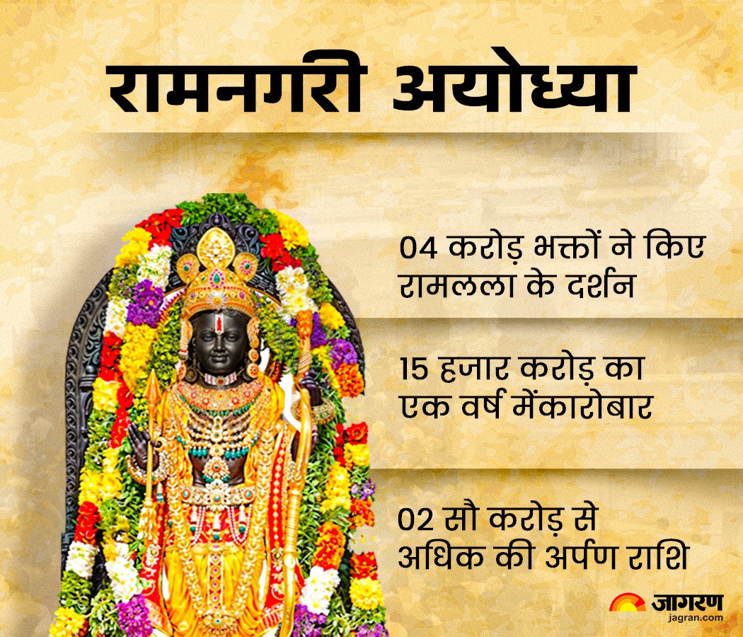 Ram Mandir Ayodhya रामलला के एक साल पूरे होने पर अयोध्या में भक्तों का तांता लगा रहा। 4 करोड़ से अधिक श्रद्धालुओं ने दर्शन किए और 200 करोड़ रुपये से अधिक का चढ़ावा चढ़ाया। अयोध्या ने लखनऊ और नोएडा से भी ज्यादा जीएसटी भरा। राम मंदिर के निर्माण से पर्यटन और व्यापार को बढ़ावा मिला है। अयोध्या अब वैश्विक आध्यात्मिक केंद्र बनने की ओर अग्रसर है।