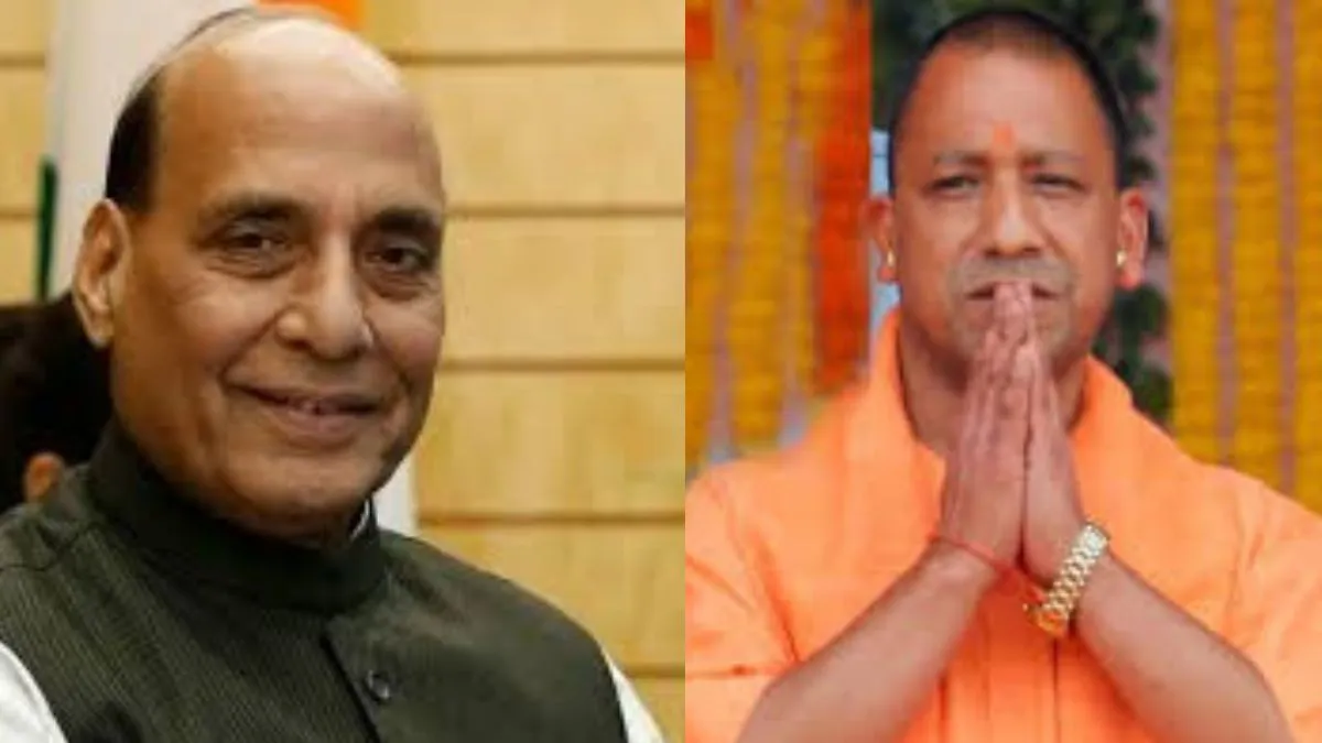 केंद्रीय रक्षा मंत्री राजनाथ सिंह व मुख्यमंत्री योगी आदित्यनाथ