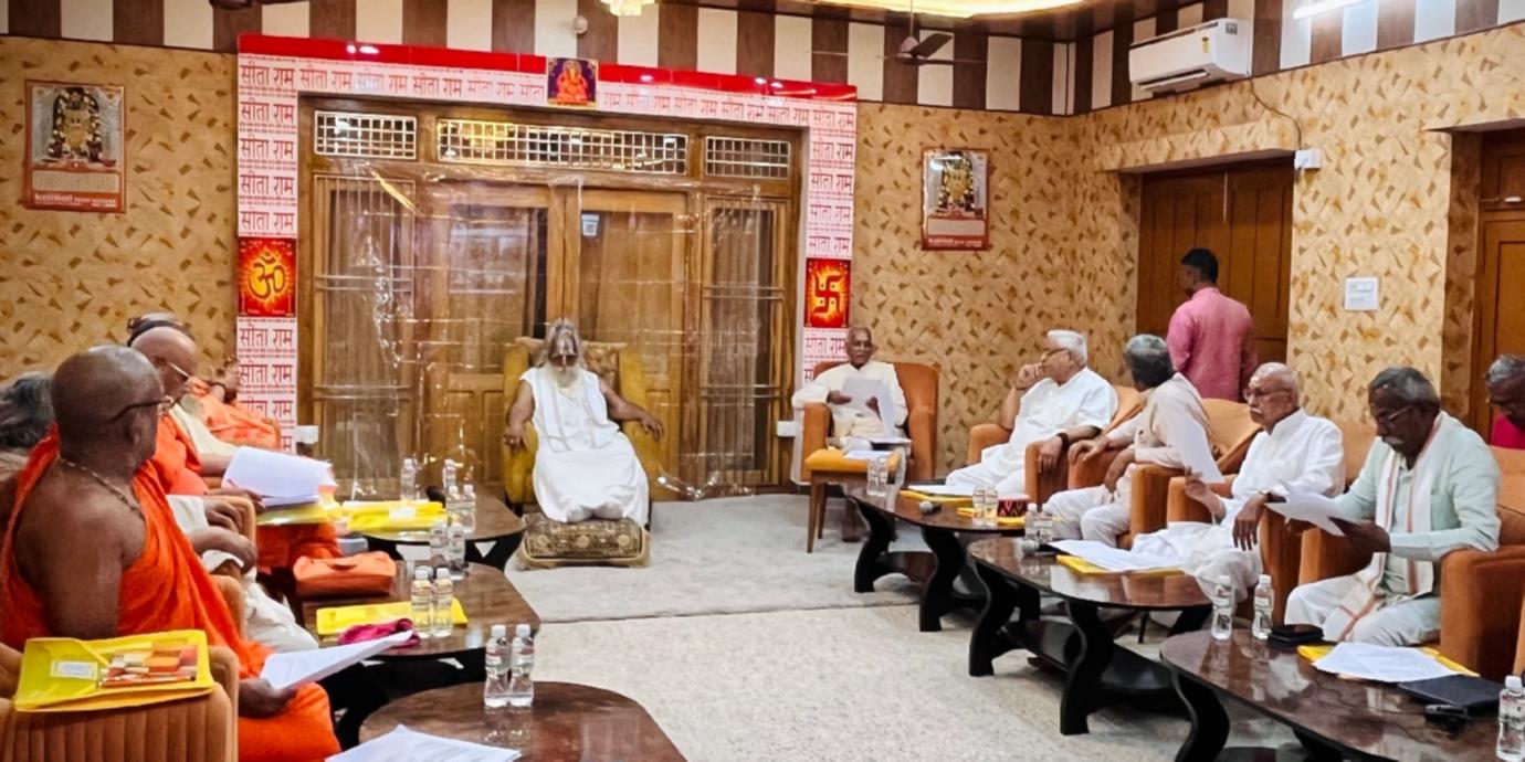 मणिरामदास जी की छावनी अयोध्या में श्रीराम जन्मभूमि तीर्थक्षेत्र ट्रस्ट की बैठक की अध्यक्षता करते ट्रस्ट अध्यक्ष महंत नृत्यगोपाल दास: जागरण