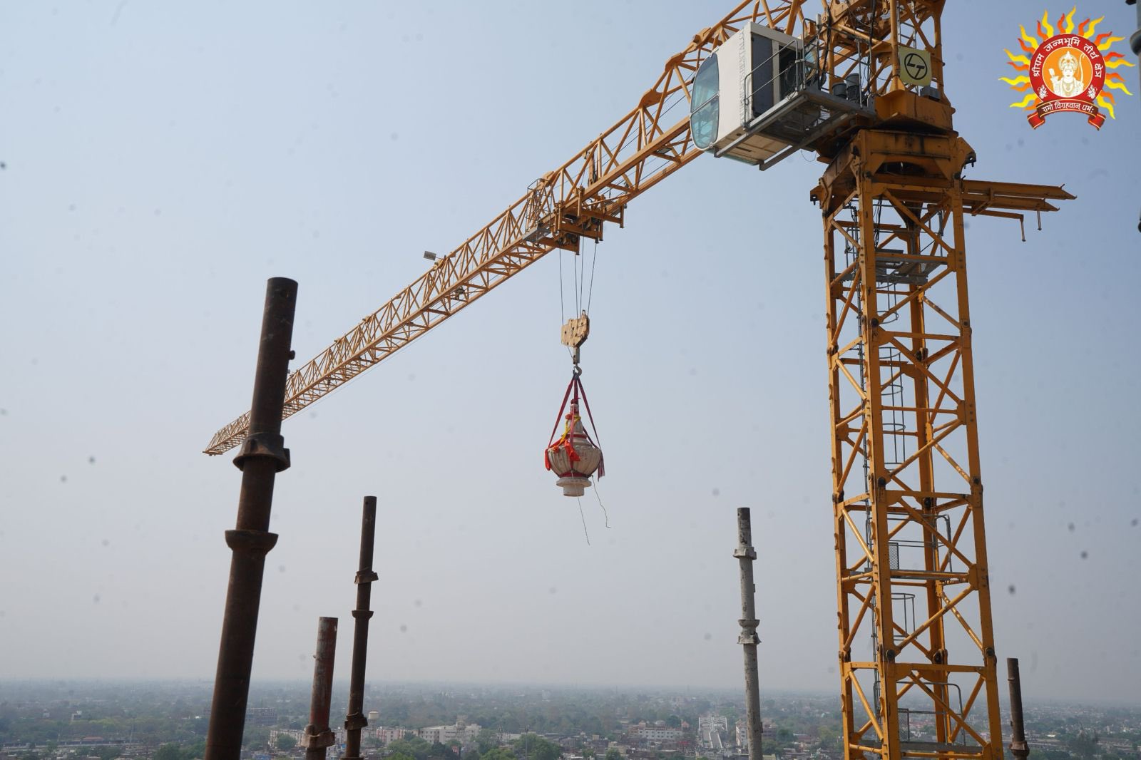 इस कारण इसे कार्यदायी संस्था लार्सन एंड टुब्रो के अभियंताओं की देखरेख में टावर क्रेन से ऊपर ले जाया गया। अब छह देवी-देवताओं के मंदिरों में कलश स्थापना के उपरांत सभी मंदिरों में धर्म ध्वज दंड स्थापित होंगे।