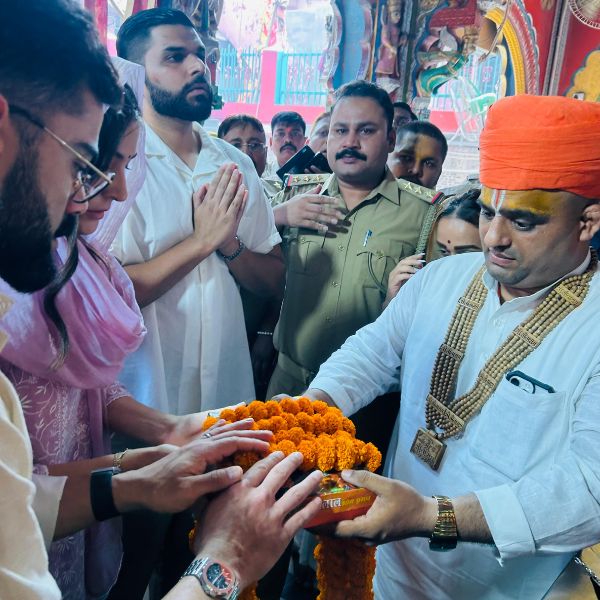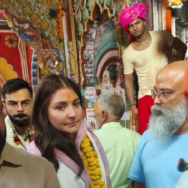 अयोध्या हनुमानगढ़ी में दर्शन के लिए पहुंचे विराट और अनुष्का।