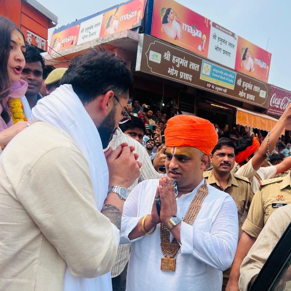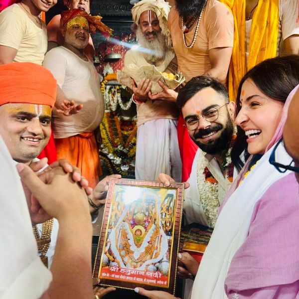 इसके बाद कोहली व अनुष्का कड़ी सुरक्षा में हनुमानगढ़ी पहुंचे और बजरंगबली का दर्शन पूजन किया। इसके बाद कोहली ने हनुमानगढ़ी से जुड़े कुछ साधु संतों से भी मुलाकात की।