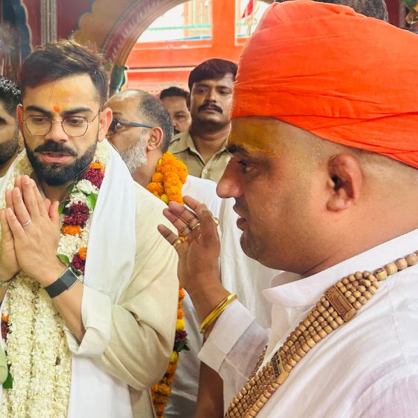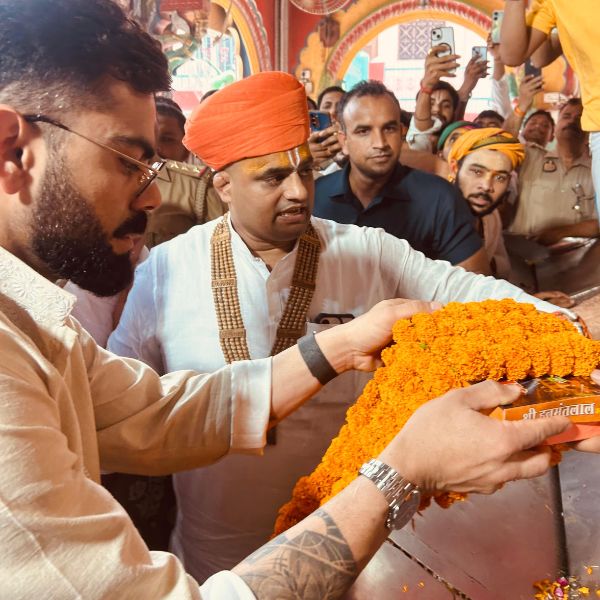 स्टार क्रिकेटर विराट कोहली हनुमानगढ़ी मंदिर में हाथ जोड़कर भगवान की पूजा करते हुए