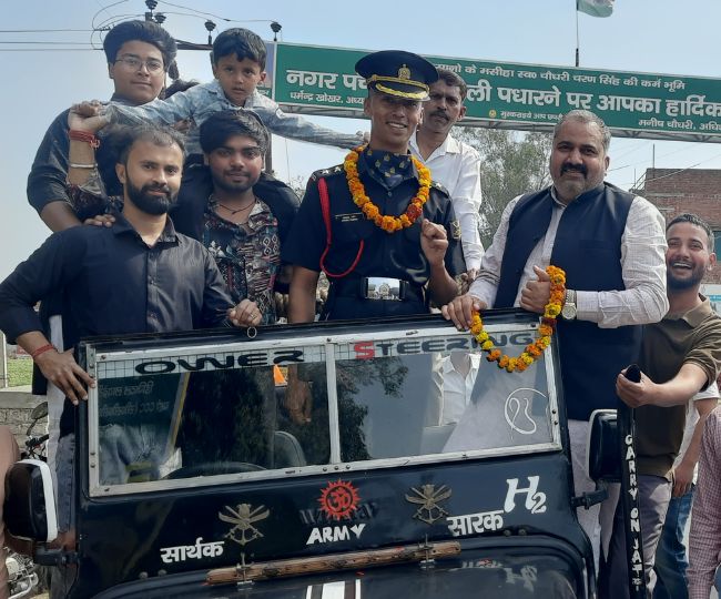 संवाद सूत्र,जागरण छपरौली/बागपत। Baghpat News: कस्बे का आकाश पंवार सेना में लेफ्टिनेंट बना। रविवार को कस्बा पहुंचने पर स्वजन एवं कस्बा वासियों ने ढोल नगाड़ों के साथ फूल माला पहनकर भव्य स्वागत किया। आकाश पंवार ने कहा उनका बचपन से देश की सरहदों की रक्षा करने का सपना था।