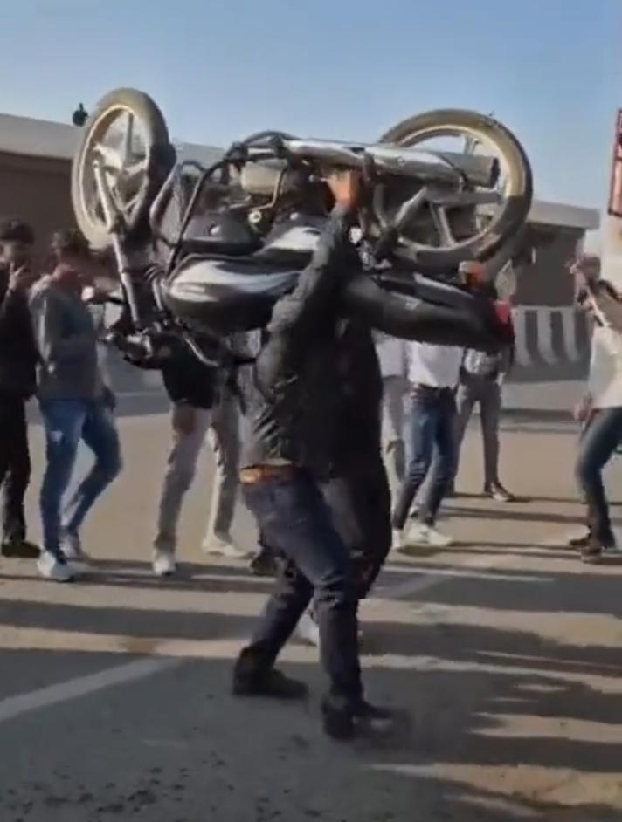 अरे बाप रे! लड़के ने हाइवे पर कंधे पर उठा ली बाइक और फिर जो किया... यूजर्स बोले- ये तो बाहुबली निकला