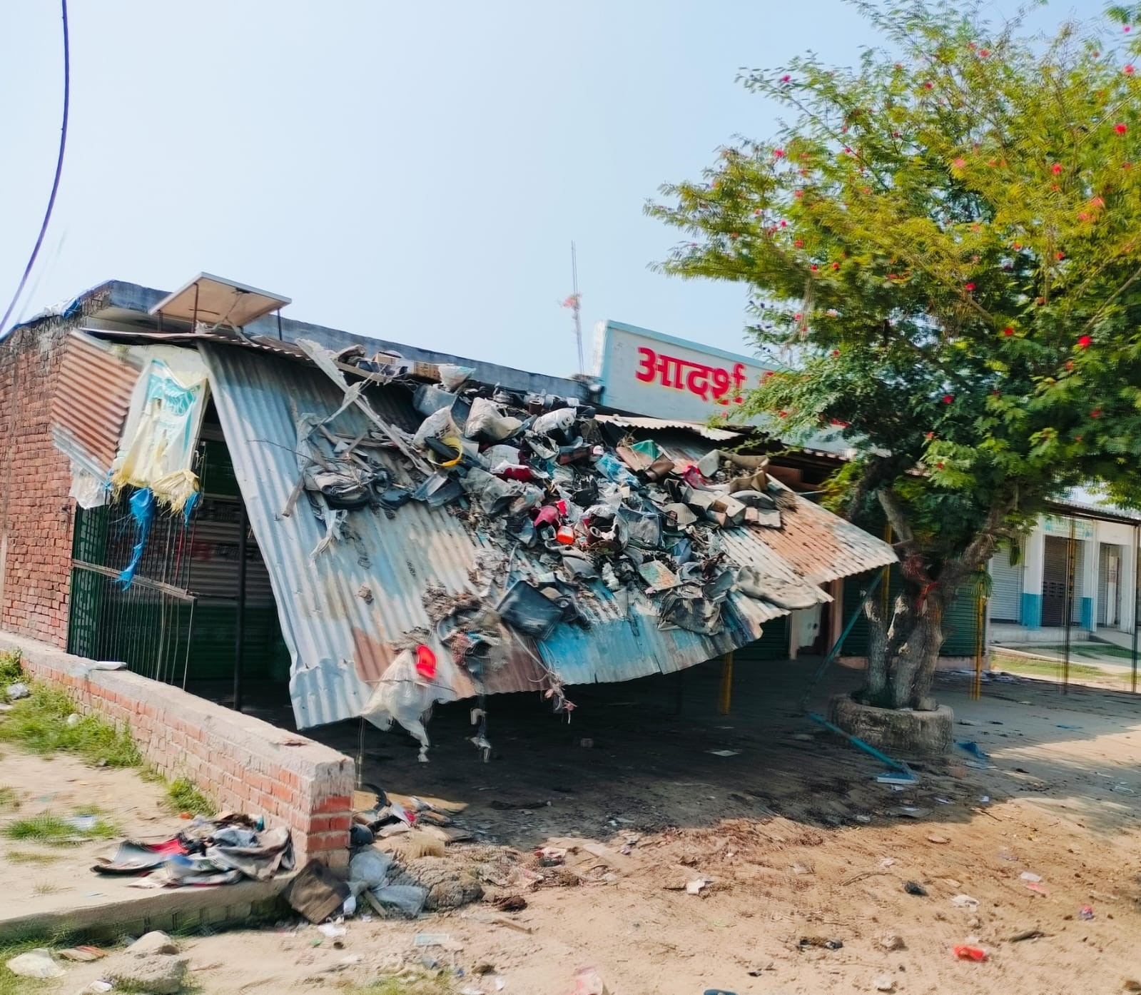घटना स्थल के निकट एक दुकान की टिन शेड पर एकत्र मलबा।-जागरण