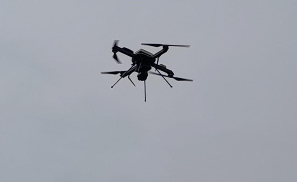 महसी क्षेत्र में भेड़िया की तलाश में उड़ता ड्रोन। जागरण