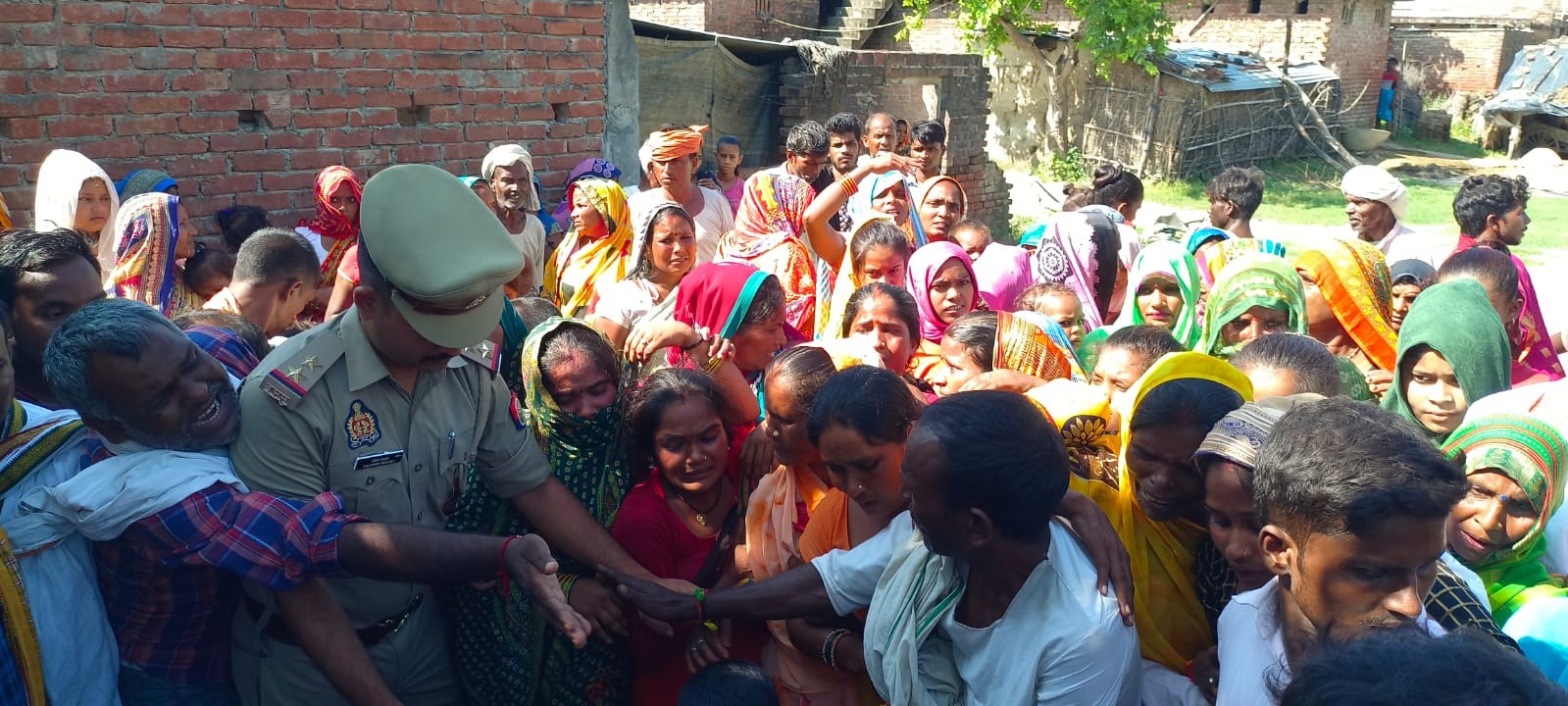 खैरीघाट थाना के दीवानपुरवा भेड़िए की ओर से मासूम को निवाला बनाए जाने के बाद रोते बिलखते परिजन। जागरण