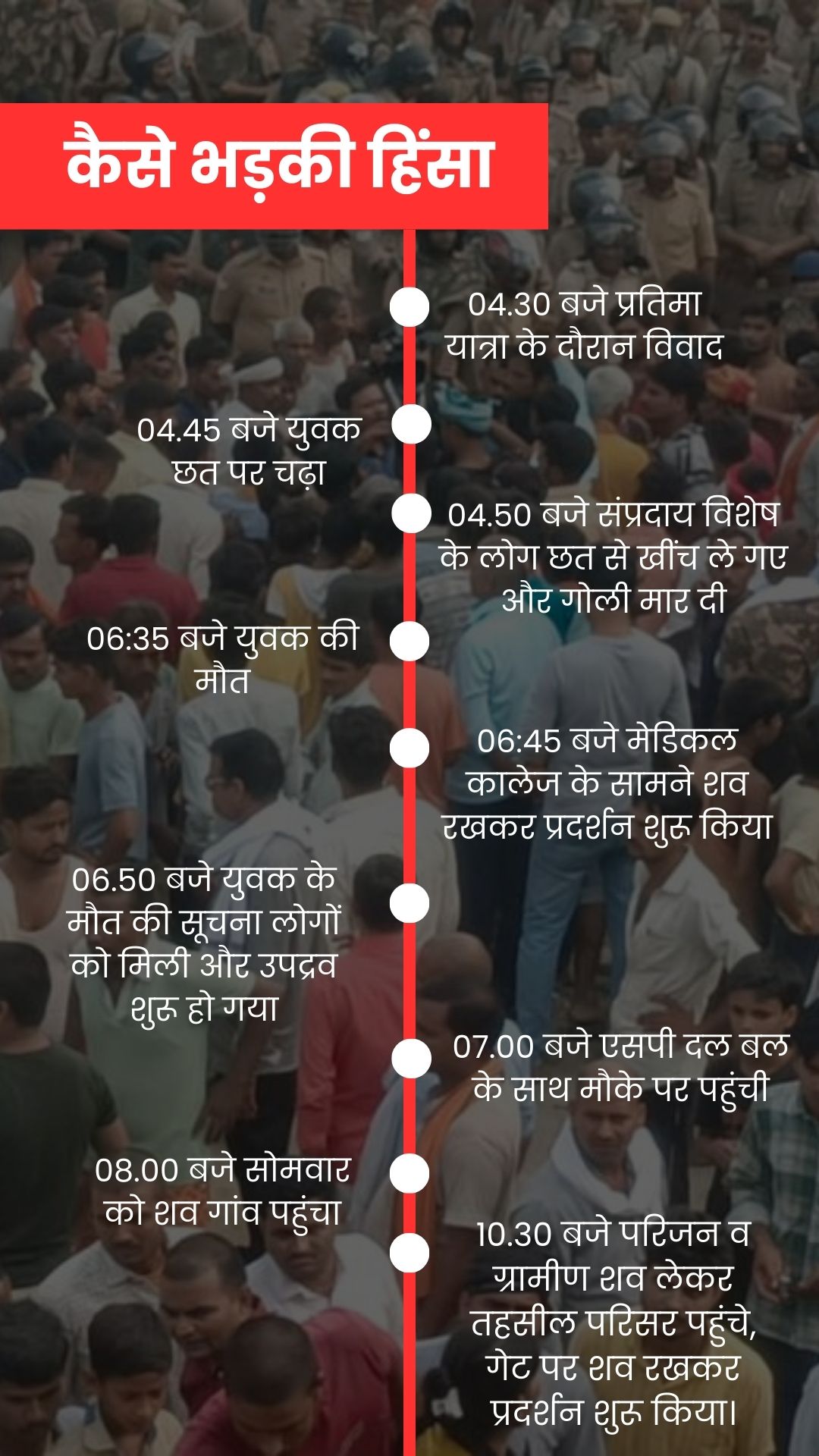 पोस्टमार्टम के बाद जब सोमवार की सुबह मृतक का शव गांव पहुंचा तो लोगों में आक्रोश भड़क गया। एकत्रित हजारों की भीड़ ने शव को महसी तहसील गेट के सामने रखकर प्रदर्शन शुरू कर दिया।