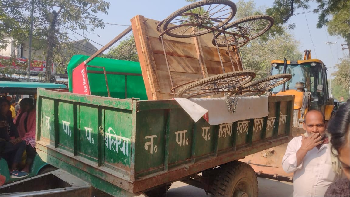 बैरिया में बुलडोजर देख स्वयं से हटाने लगे अतिक्रमण