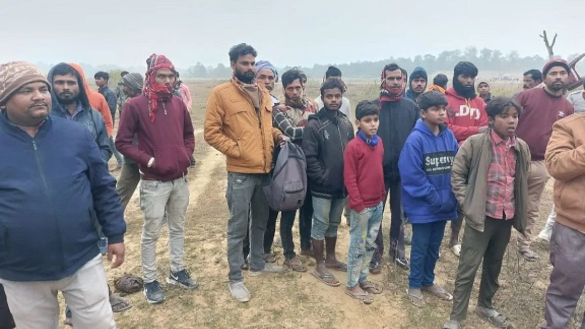 गोहनहवा गांव के निकट बरहवा जंगल स्थित घटनास्थल पर जुटे ग्रामीण
