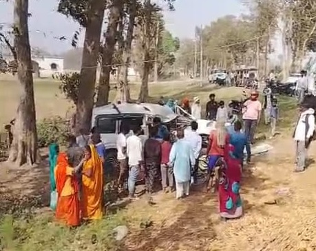 स्कॉर्पियो में सवार नेपाल के दांग जिला स्थित तुलसीपुर शहर निवासी 75 वर्षीय प्रवीण खत्री पुत्र काशीराम की मौत हो गई। उनकी पत्नी 70 वर्षीय लालमती, 84 वर्षीय जय बहादुर, 38 वर्षीय युवराज, 80 वर्षीय धनबली, 35 वर्षीय कैलाश व 50 वर्षीय नौमैत्री घायल हुई हैं।
