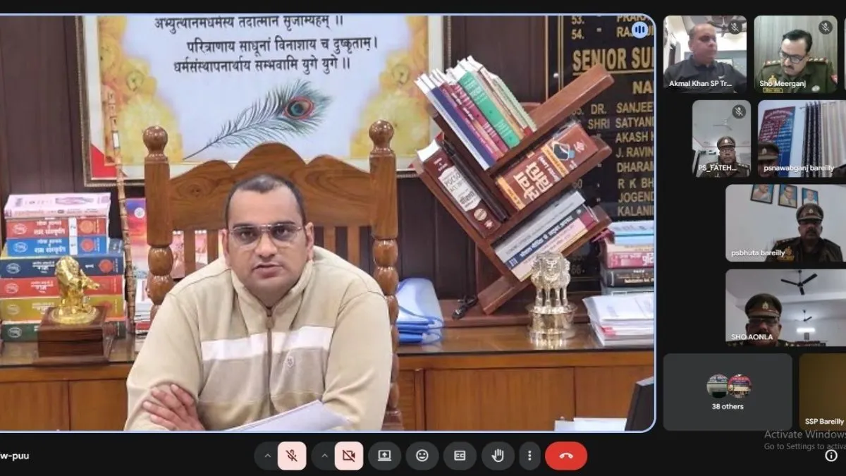 गूगल मीट के माध्यम से सभी एडिशनल एसपी, सीओ और थाना प्रभारियों के साथ समीक्षा बैठक करते एसएसपी अनुराग आर्य। सौ. पुलिस