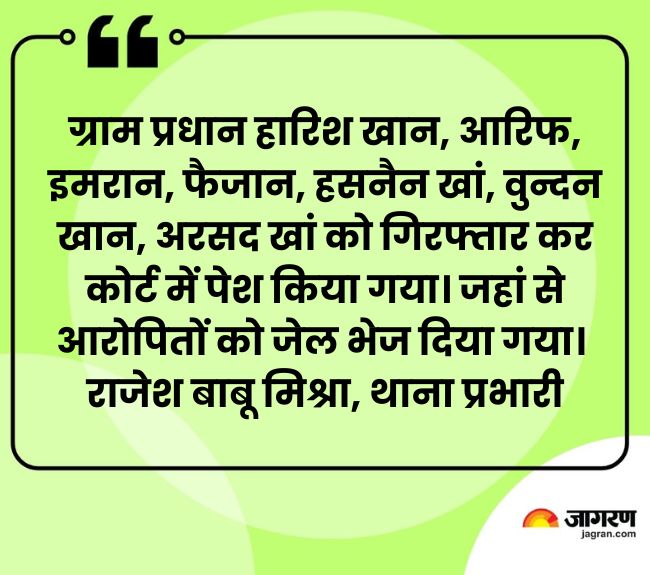 इसकी जानकारी पुलिस तक पहुंची तो पुलिस ने रविवार की रात ग्राम प्रधान हारिश खान, उनके भाई आरिफ, बेटे अरबाज, जीशान, भतीजे वाजिद और गांव के रिजवान, बाबू, आरिफ उर्फ सब्बुआ को नामजद करते हुए 150 अज्ञात के विरुद्ध प्राथमिकी लिखी।
