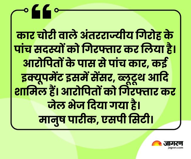 हाईटेक कार चोरी करने वाले अंतरराज्यीय गिरोह के पांच सदस्य गिरफ्तार, सेंसर से तोड़ते थे गाड़ी का सिक्योरिटी सिस्टम