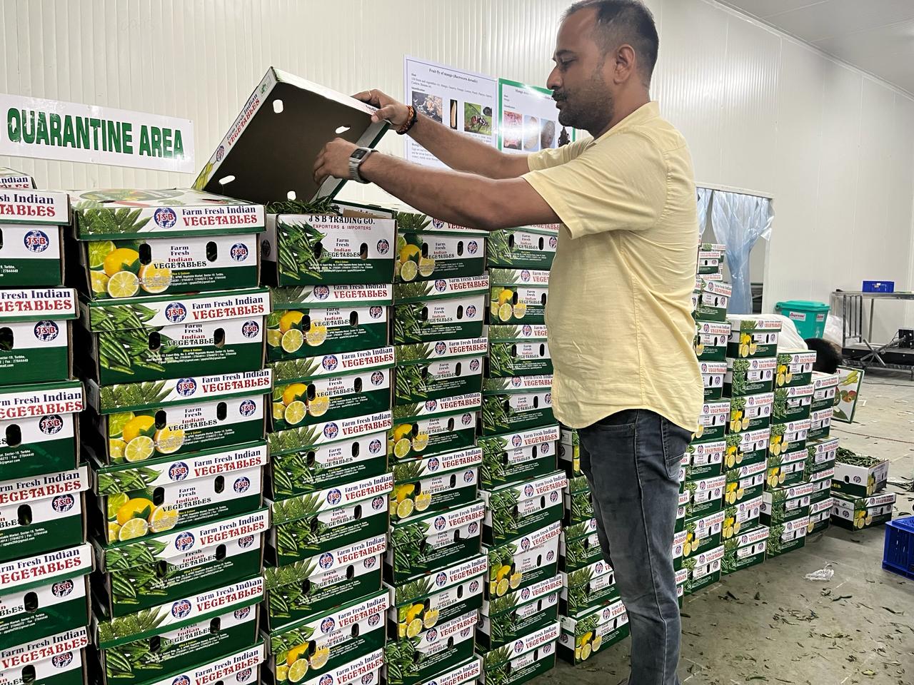 वाराणसी के करखियांव पैक हाउस में हरी सब्जियों की पैकिंग करते कृषक शाश्वत पांडेय। (फाइल फोटो) फोटो स्वयं