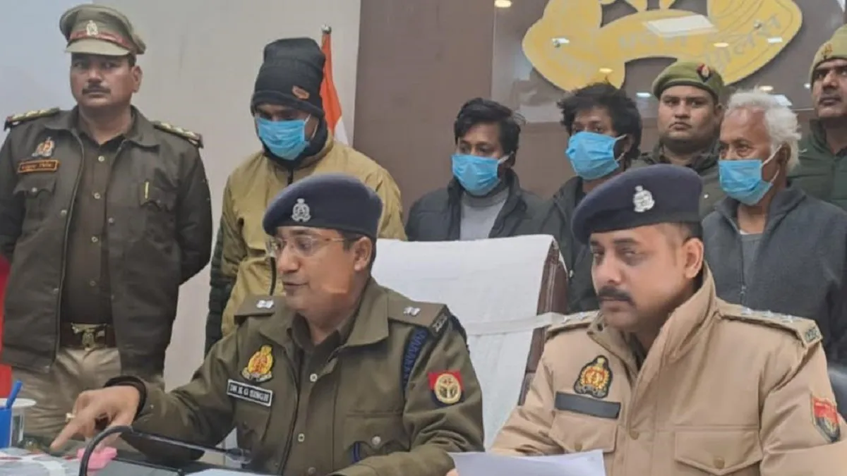 पुलिस लाइन में आयोजित पत्रकार वार्ता में हत्यारोपितों के बारे में जानकारी देते एएसपी सिटी। सौ. पुलिस