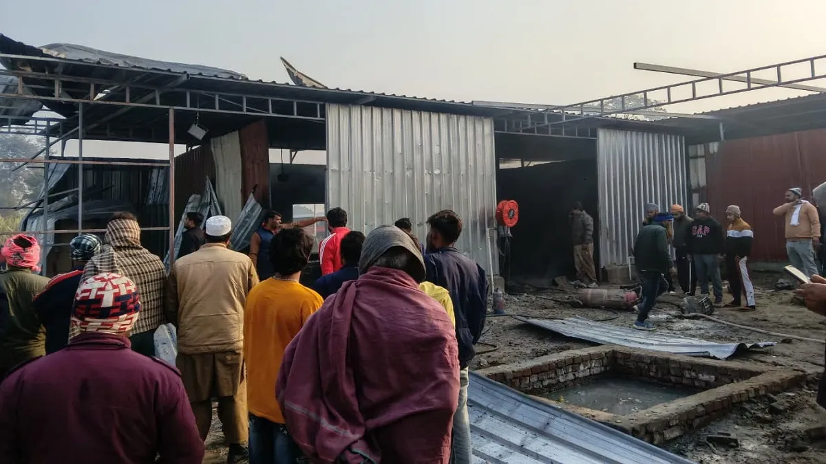 नहटौर क्षेत्र के गांव आकू में फैक्ट्री में धमाके बाद मौजूद लोग