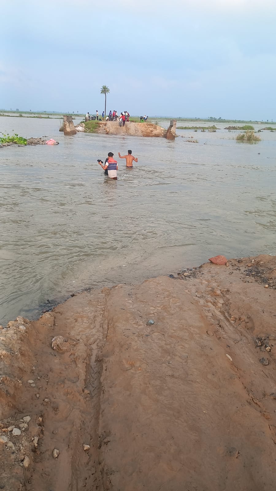 शिक्षक मजबूरी में पानी के बीच गुजर रहे