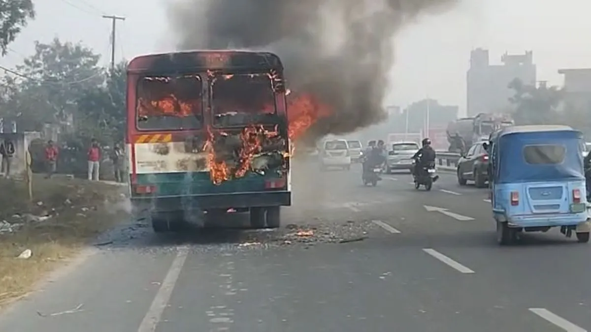 अलीगढ़-गाजियाबाद हाईवे पर चलती बस में लगी आग, चालक की सूझबूझ से 35 यात्रियों की बची जान