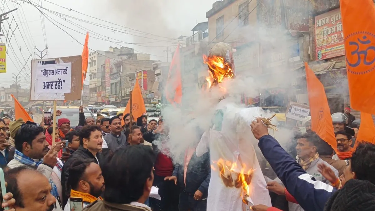 चंदौली में बजरंग दल और विश्व हिंदू परिषद का बांग्लादेश में हिंदुओं पर अत्याचार के खिलाफ प्रदर्शन