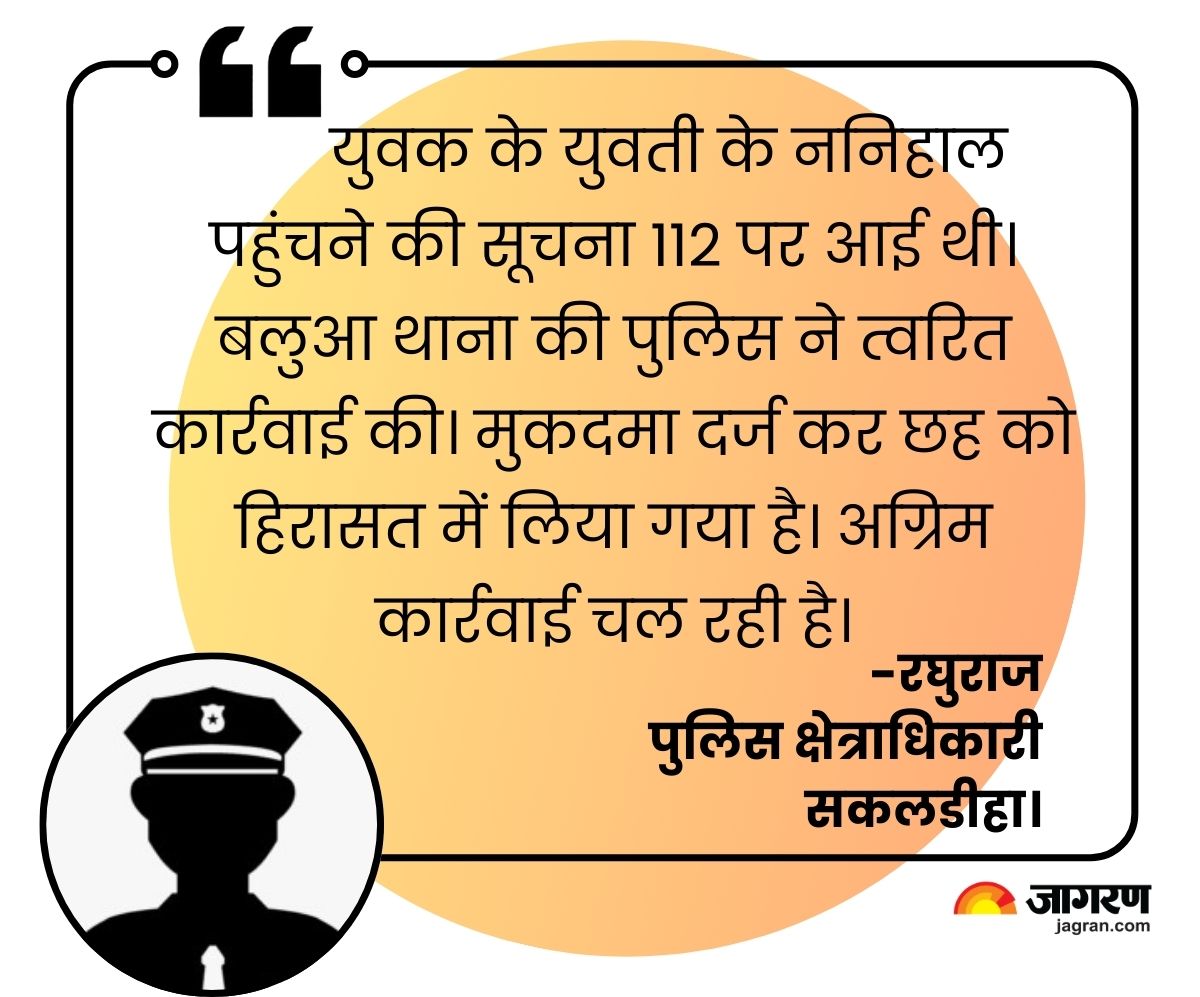 युवक के युवती के ननिहाल पहुंचने की सूचना 112 पर आई थी। बलुआ थाना की पुलिस ने त्वरित कार्रवाई की। मुकदमा दर्ज कर छह को हिरासत में लिया गया है। अग्रिम कार्रवाई चल रही है।
