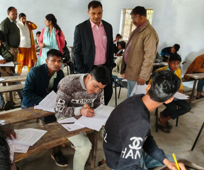 सकीट विकासखंड क्षेत्र के डीएवी इंटर कालेज परीक्षा केंद्र पर हाइस्कूल गणित की परीक्षा के दौरान परीक्षण करते जिला बेसिक शिक्षा अधिकारी दिनेश कुमार। जागरण