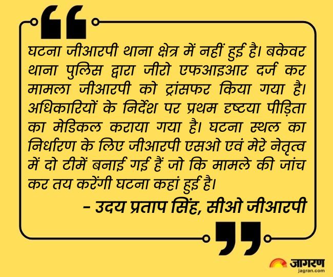 प्रभारी निरीक्षक राकेश शर्मा ने बताया कि युवती के पिता के प्रार्थना पत्र पर तीन अज्ञात के विरुद्ध सामूहिक दुष्कर्म का मुकदमा दर्ज करने के बाद एफआइआर जीआरपी थाने पर जीरो क्राइम पर भेज दी गई है। वहीं से घटना की जांच की जाएगी तथा घटना की उच्च अधिकारियों को जानकारी भी दे दी गयी।