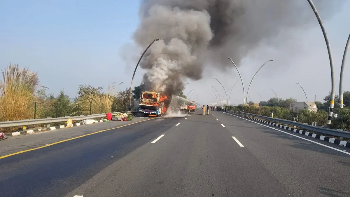 आगरा लखनऊ एक्सप्रेस पर नेपाल जा रही प्राइवेट बस में लगी आग, बाल बाल बचे यात्री