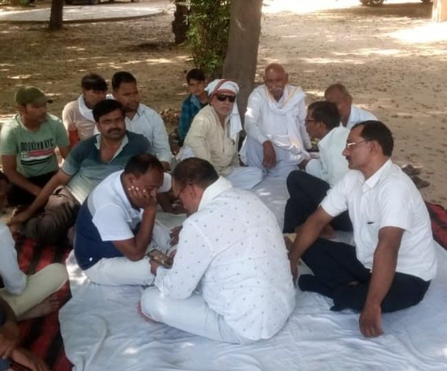 ग्राम पंचायत रसीदपुर कनेटा के पूर्व प्रधान अनार सिंह गुर्जर व अन्य ग्रामीण ग्राम सभा की सार्वजनिक भूमि को भूमाफियाओं से कब्जा मुक्त कराने के लिए कलेक्ट्रेट परिसर में शुक्रवार को अनशन पर बैठे।