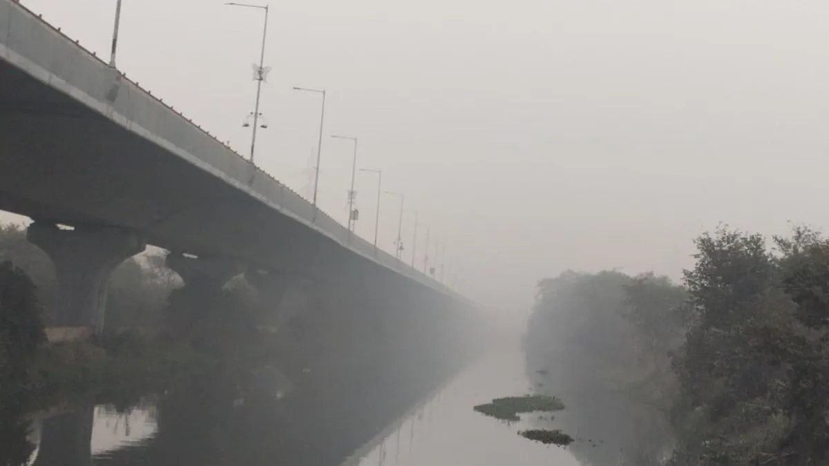 वैशाली सेक्टर- पांच व छह की पुलिया के पास छाया स्मॉग। जागरण