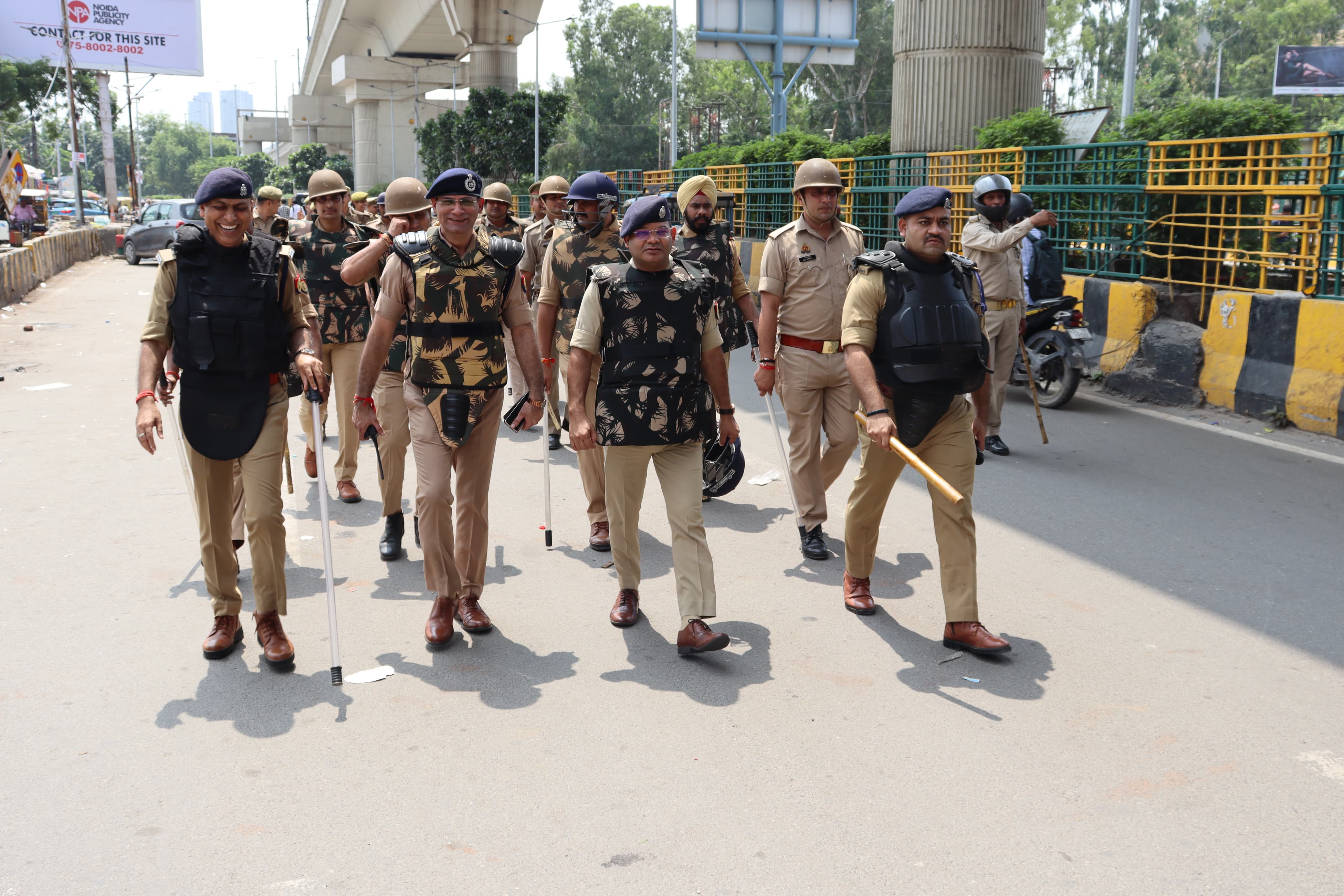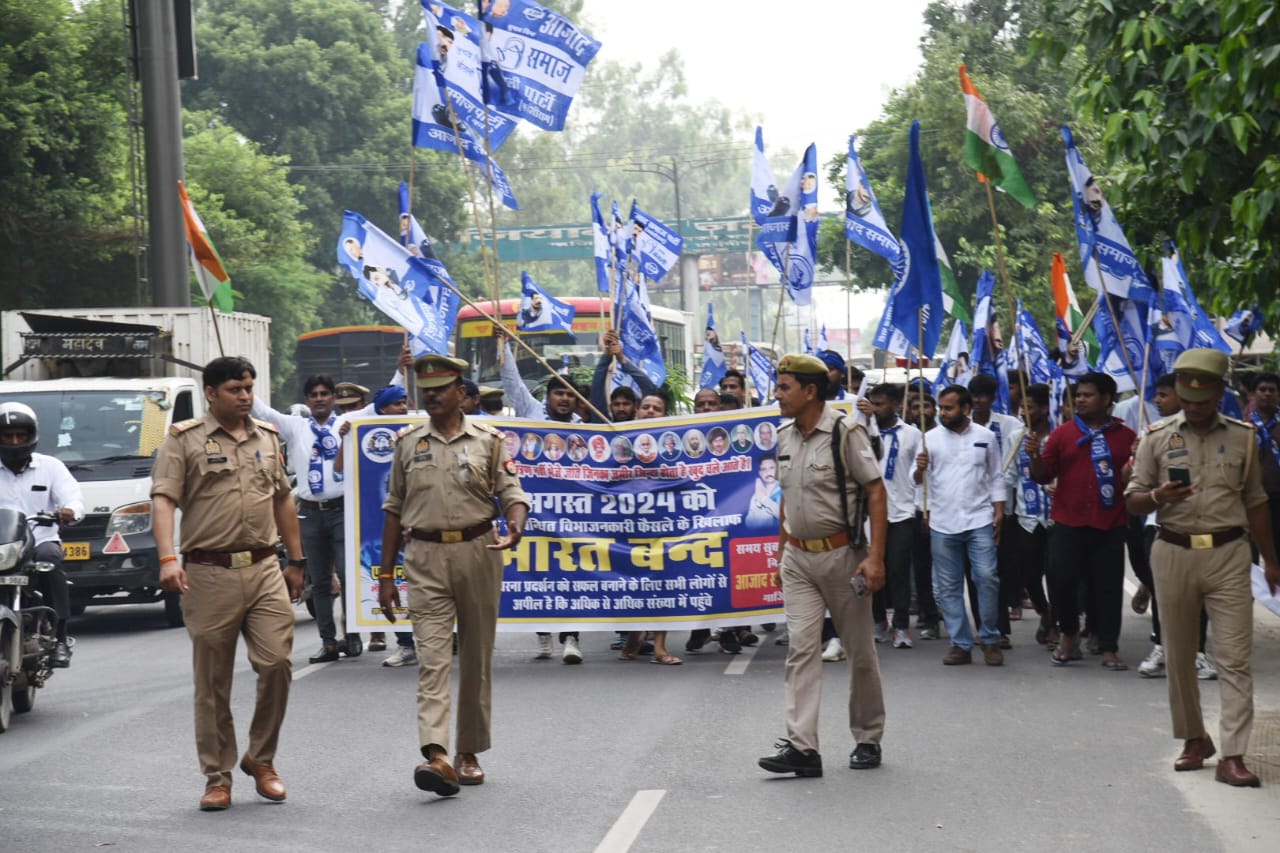 वहीं भारत बंद के आह्वान के मद्देनजर अपर पुलिस आयुक्त (कानून एवं व्यवस्था) शिवहरी मीना ने सेक्टर 18, 27 मार्केट में डीसीपी नोएडा रामबदन सिंह, डीसीपी अनिल यादव, एडीसीपी मनीष मिश्र के साथ पुलिस फोर्स के पैदल मार्च निकाला। सुरक्षा व्यवस्था एवं शांति व्यवस्था के दृष्टिगत पुलिस बल को ब्रीफ करते हुए सर्तकता के साथ ड्यूटी करने हेतु निर्देशित किया गया है।